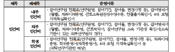 팁스에서 안내하는 인건비 증빙 준비는 아래의 서류..