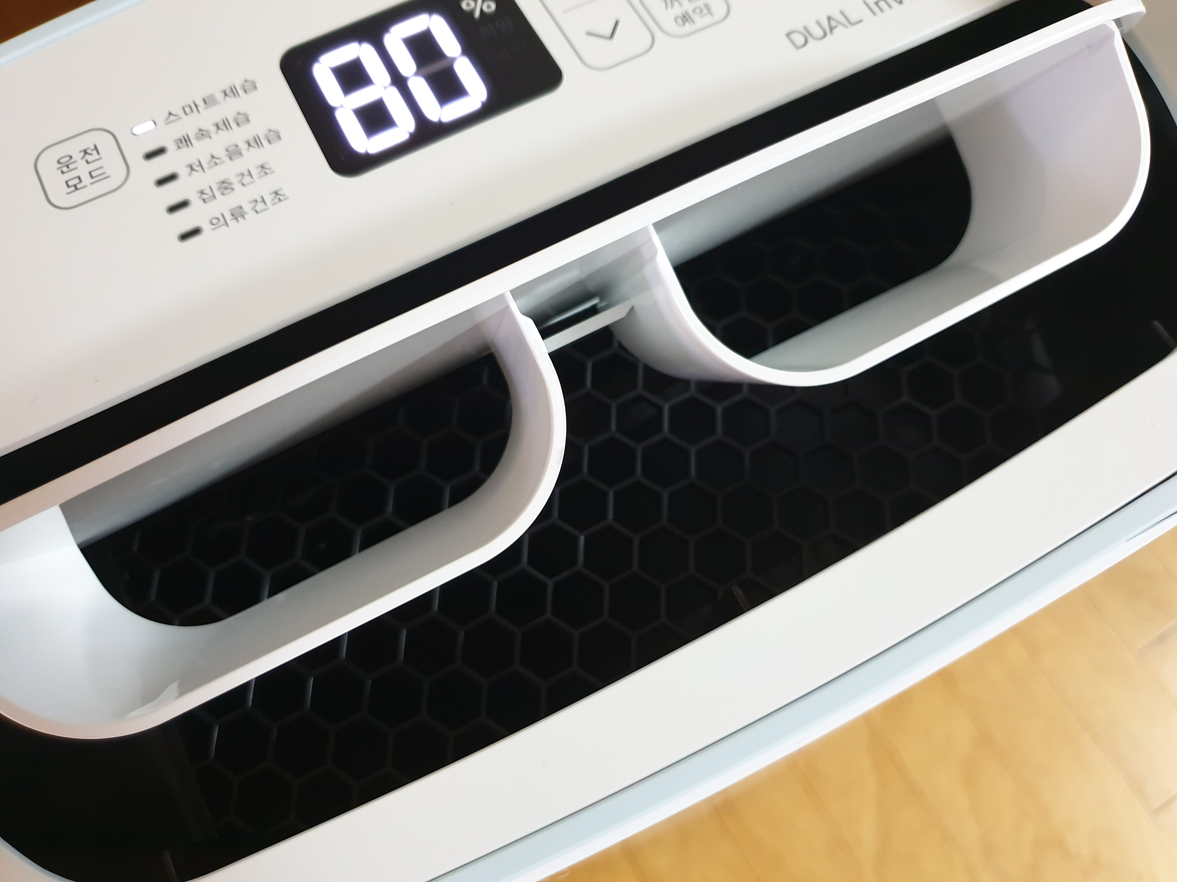 제습기를 동작을 하면 바로 습도가 나오는데 80%나 되네요. 오홋!