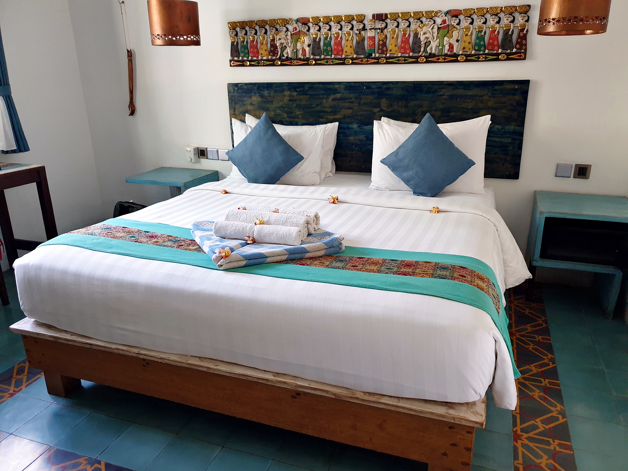 이불이 좀 눅눅하기는 했는데.. 섬이고 바로 앞 수영장 덕분에 뽀송뽀송함을 기대하기는 힘들겠죠.