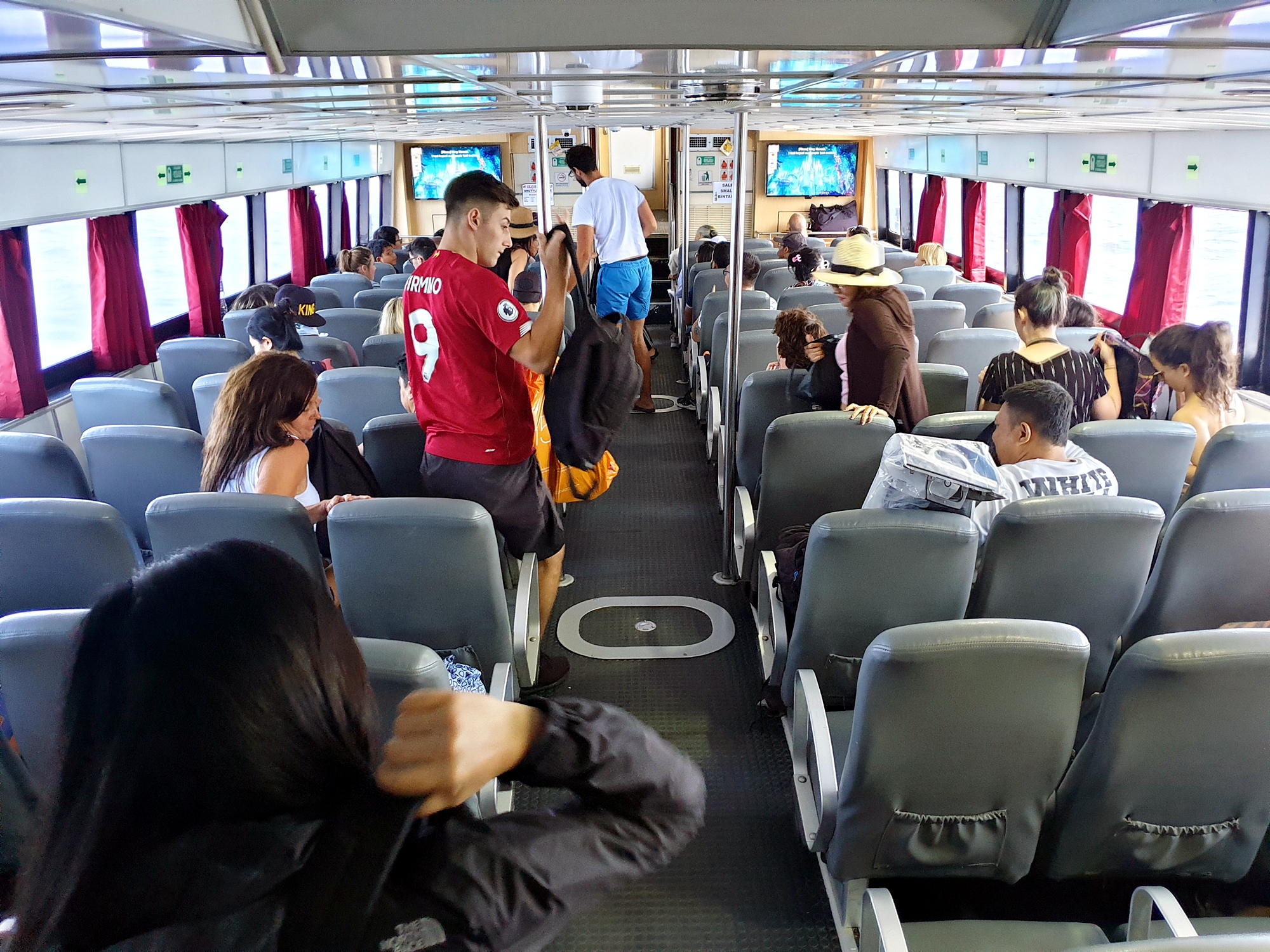 ▲ 양쪽 끝 그리고 중간 이렇게 3부분으로 좌석이 나누어져 있고 배가 달리기 시작하면 배위로 올라갈 수 있습니다. 맥주도 마실 수 있고 감자칩 같은 것도 구입이 가능하구요. 그리고 제가 탔을때는 사람이 별로 없어서 팔걸이가 없는 좌석이 누워서 가시는 분들도 있더군요.