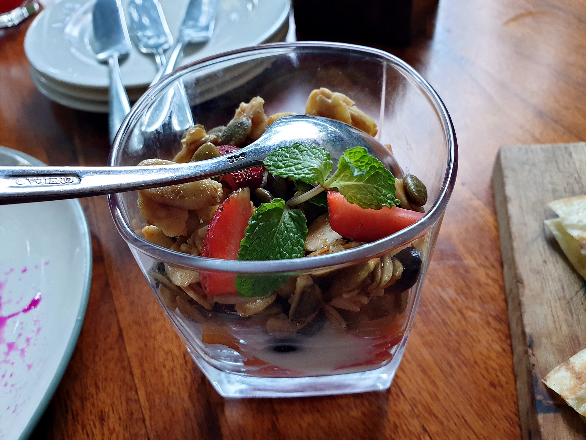 메뉴는 조식뷔페가 아닌 주문을 해서 먹는 형태로 되어 있고.. 빵 같은 경우는 따로 테이블에 가져와서 골라서 먹을 수 있습니다. 사진으로 보이는건 에피타이저! 공통으로 일단 나오네요!
