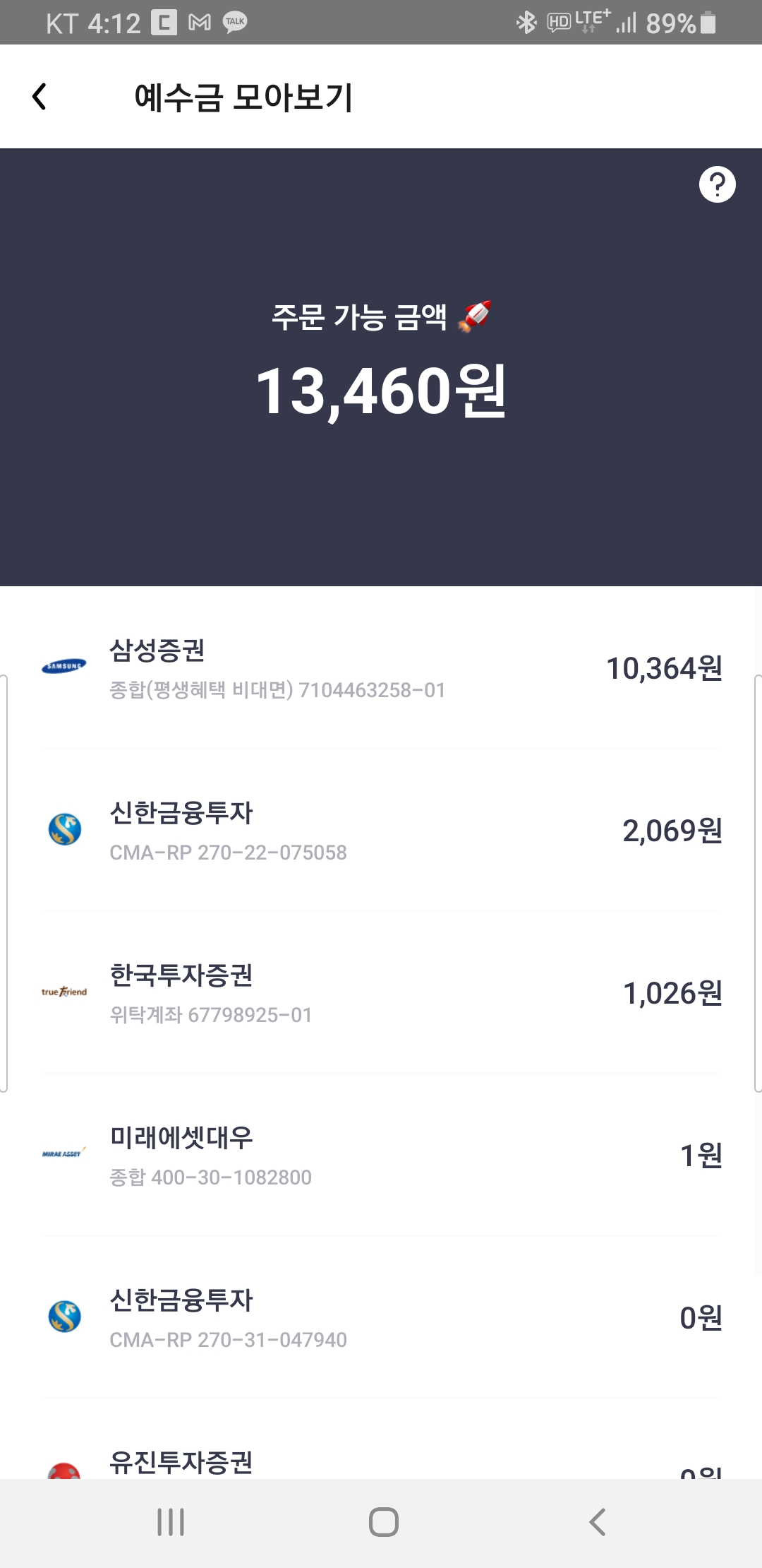 한투에 예수금이 꽤 있었네요. 이전에 미니스탁에서 매매한 후에 금액 자체를 잊고 있었다가..