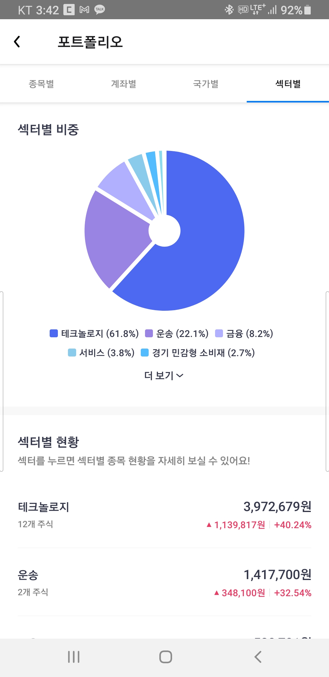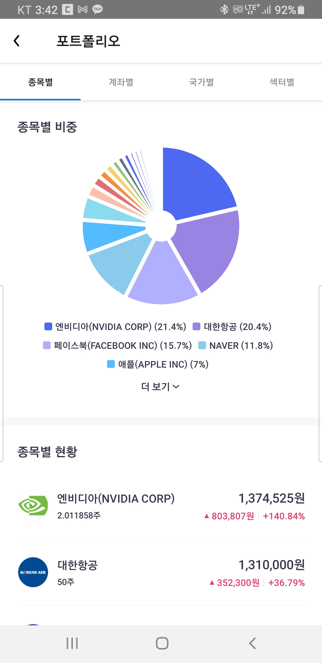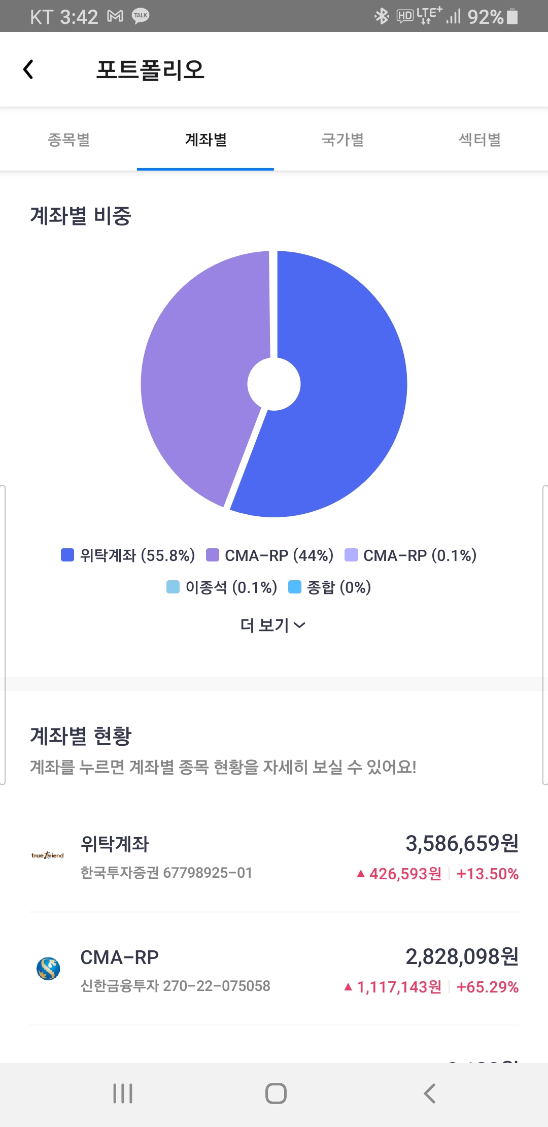 ▲ 중요한 포트폴리오 부분을 보시면 이렇게 자신의 포트폴리오 구성을 퍼센트로 보실 수 있습니다.