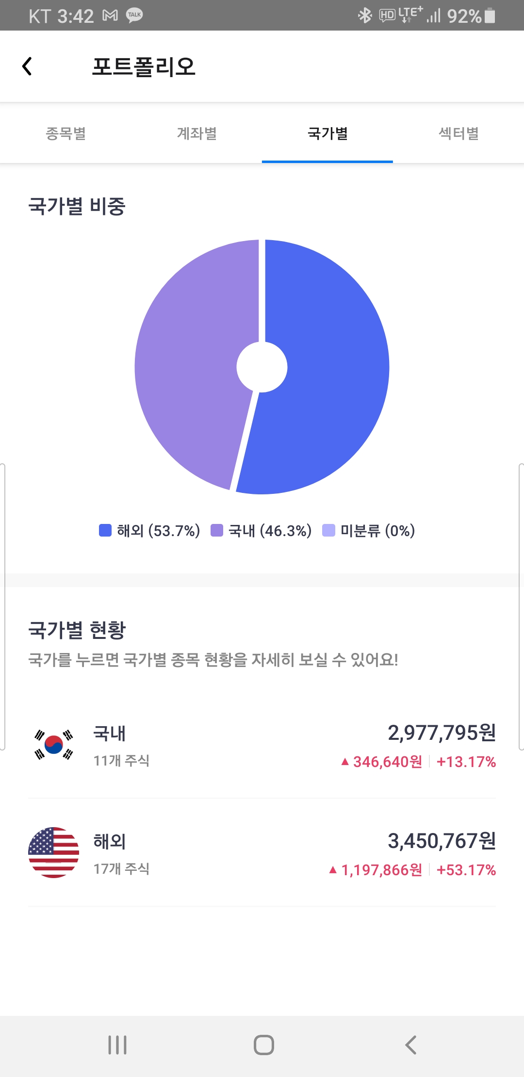 그리고 국가별로.. 전 미국주식만 있지만 중국이나 다른 해외주식도 많이들 하시더라구요.