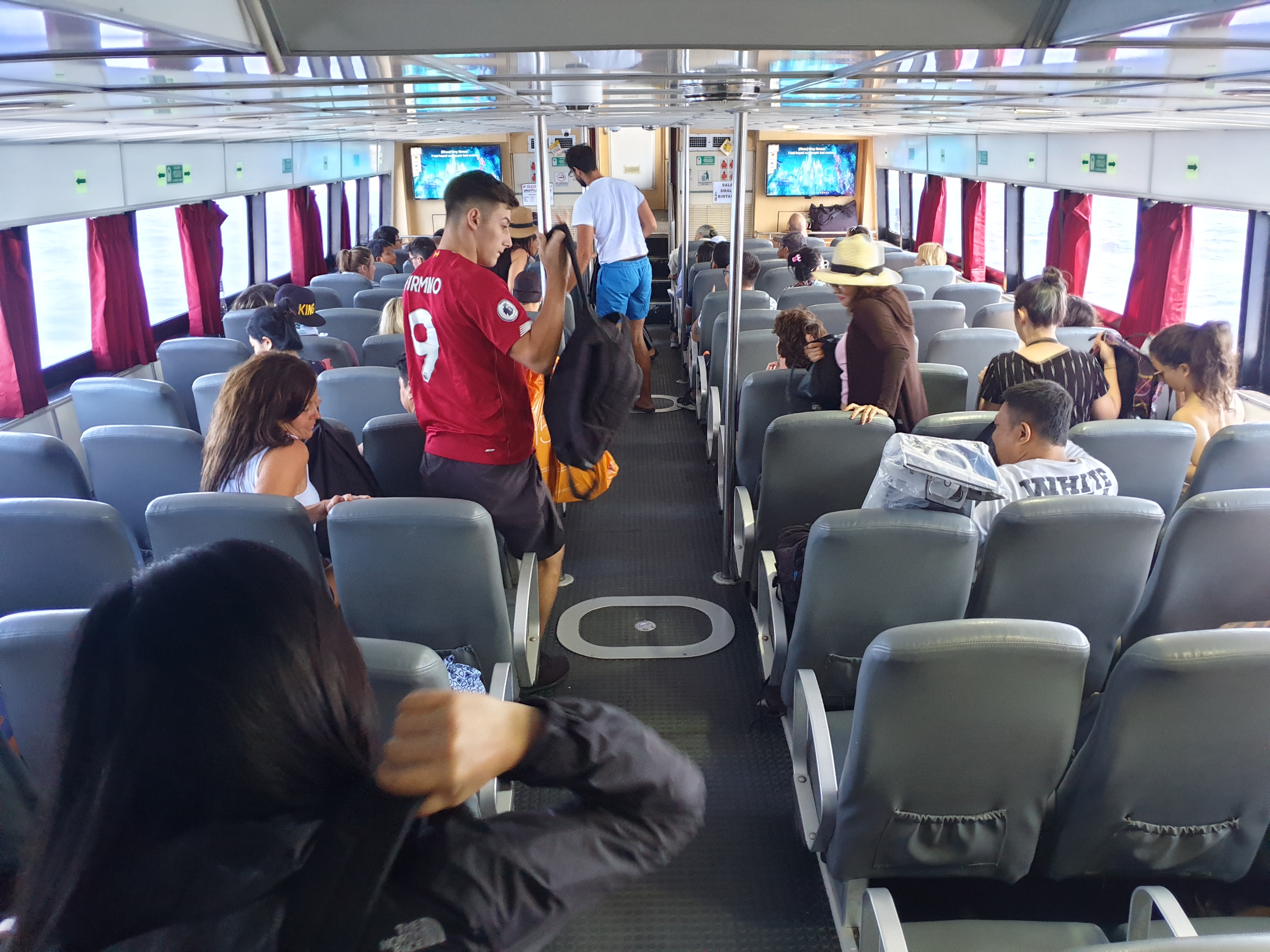 역시 배는 누워서 가면 정말 좋죠. 이렇게 자리 칸막이가 없는 의자들이 있으니 탑승객이 많지 않으면 누워가시는 것도 멀미를 그나마 피할 수 있는 방법입니다.