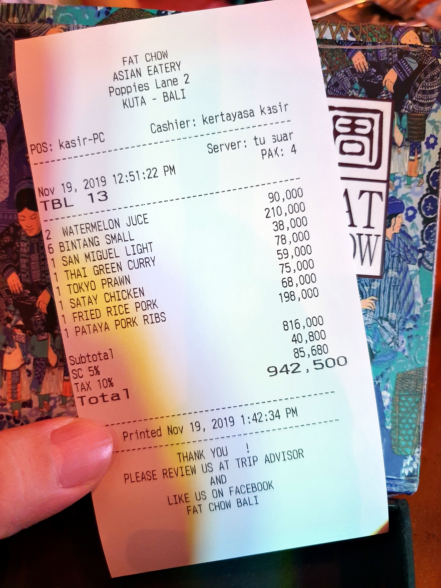 발리자유여행 꾸따맛집 Fat Chow Bali 짠내투어 팻차우 방문기