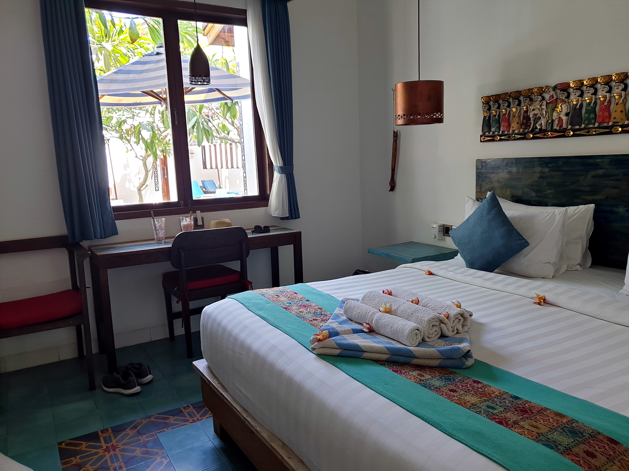 이불이 좀 눅눅하기는 했는데.. 섬이고 바로 앞 수영장 덕분에 뽀송뽀송함을 기대하기는 힘들겠죠.