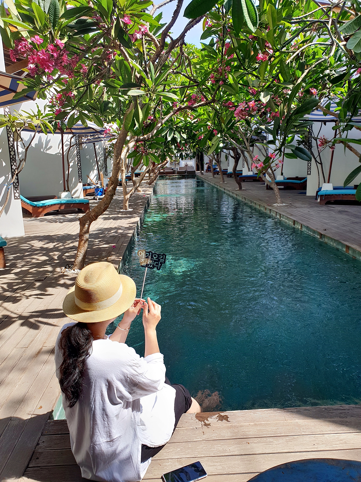 ▲ 수영장물은 숙소 자체가 그늘로 되어 있다 보니 상당히 찬 편이예요. 그리고 바닷물이라서 짭니다!!