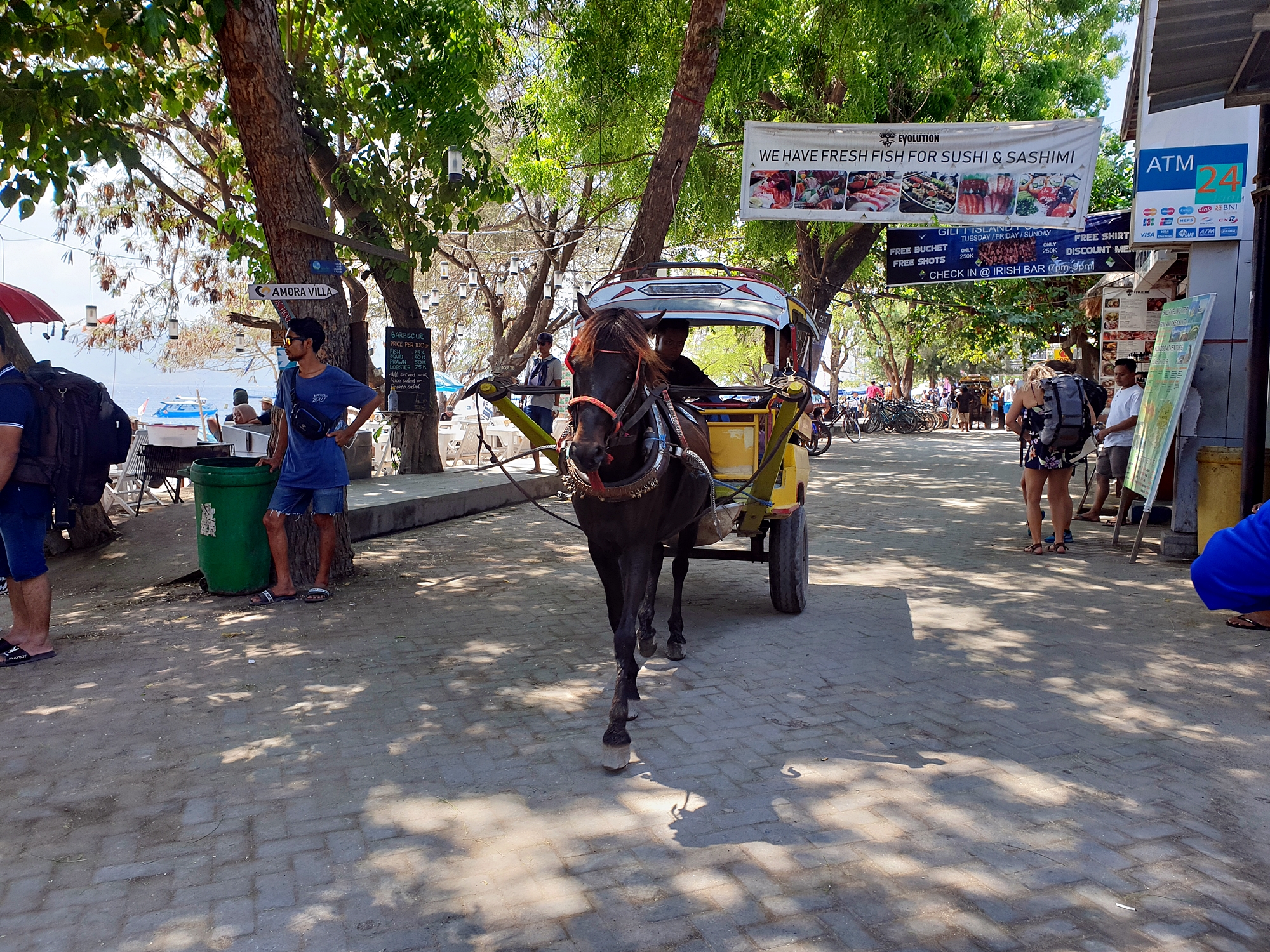발리여행 길리트리왕안에는 전동 교통수단이 없습니다 .전기 오토바이는 몇번 본적이 있기는 하는데 마차 아니면 자전가라고 보시면 됩니다. 특히 짐이 있는 경우는 마차를 이용하셔야 하는데 잘리리조트하고 선착장하고 거리가 꽤 멀기 때문에 가능하면 마차를 이용하시는게 좋으실거예요.